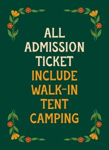All admission tickets include walk-in tent camping.